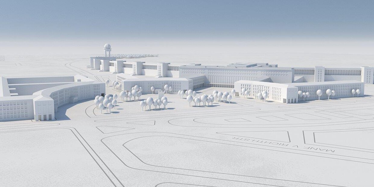 Anlässlich des Gedenktages an die Opfer des Nationalsozialismus wurde am 27. Januar 2023 eine neue Medienstation im Besucherzentrum CHECK-IN eingerichtet. Die in Kooperation mit der Stiftung Topographie des Terrors entwickelte Anwendung stellt die Geschichte und Entwicklung des Flughafengeländes in den Jahren 1933 bis 1945 anhand einer 3D-Rekonstruktion dar, um insbesondere das bauliche Geschehen im Nationalsozialismus nachvollziehbar werden zu lassen. Der besondere Schwerpunkt liegt dabei auf dem Bau des neuen Flughafens. Besichtigt werden kann das Modell ab sofort im Besucherzentrum CHECK-IN.
