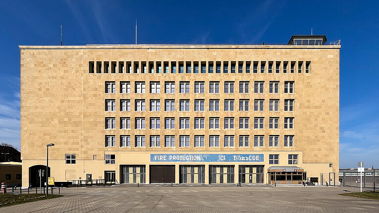 Die Alte Feuerwache ist im Erdgeschoss des THF TOWERs. Der Eingang befindet sich auf der rechten Seite des Gebäudes.