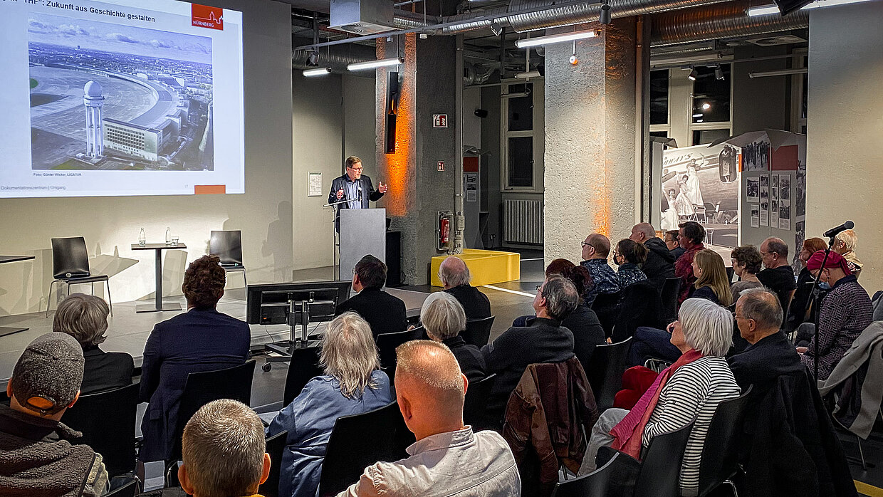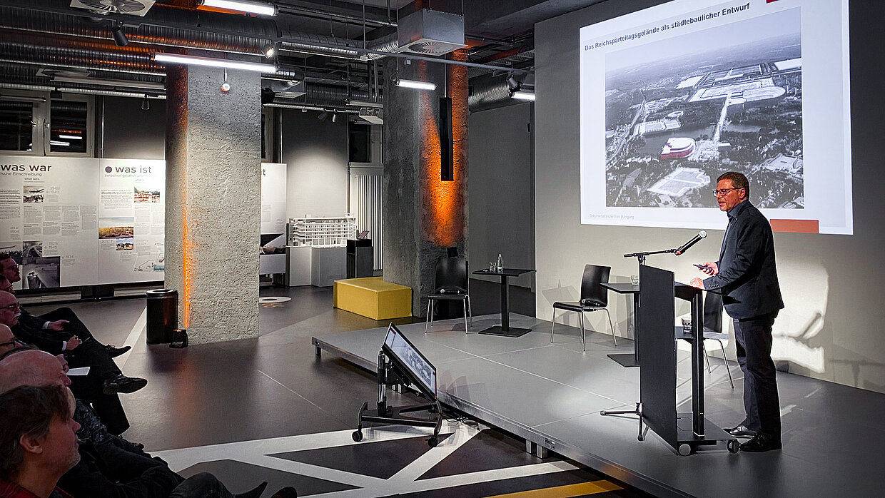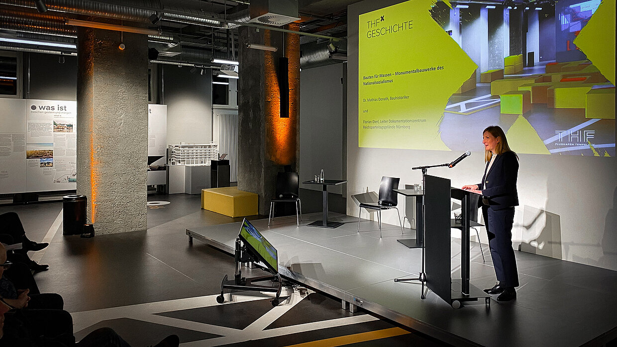 Am 22. März 2023 wirft der Bauhistoriker Dr. Matthias Donath einen Blick auf den Architekturwandel Berlins zwischen 1933 und 1945 und die Entwicklungen von nationalsozialistischen Machtwerken zu Objekten des Denkmalschutzes. Der Leiter des Dokumentationszentrums Reichsparteitagsgelände in Nürnberg, Florian Dierl, knüpft daran mit seiner Berufspraxis an und berichtet von den komplexen Herausforderungen im Umgang mit einem bedeutenden historischen Ort.