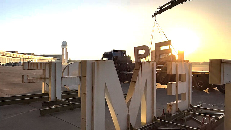 Im Herbst 2024 wurde der ikonografische, 42 Meter lange und 2 Meter hohe Schriftzug BERLIN – TEMPELHOF vom Dach der Vorfeldüberdachung montiert und in eine Spezialwerkstatt in Berlin-Hoppegarten gebracht. Dort wurde er umfassend denkmalgerecht saniert. Nun kommen die Leuchtbuchstaben im neuen Gewand zurück. Doch bevor sie wieder auf das Dach montiert werden, stehen sie zum Anfassen auf dem Vorfeld.