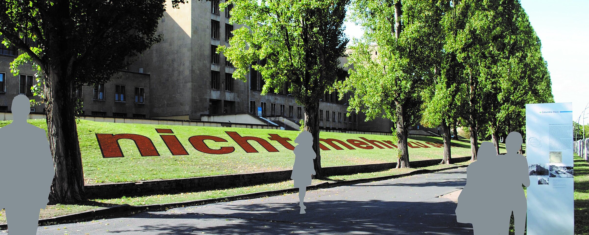 Ab September wird am Columbiadamm die Schriftinstallation „nicht mehr zu sehen“ an die Geschichte des „Columbia-Hauses“ erinnern. Das „Columbia-Haus“ – eine Militärarrestanstalt aus dem 19. Jahrhundert – wurde von den Nationalsozialisten zwischen 1933 und 1936 als Gestapo-Gefängnis und Konzentrationslager genutzt, bevor es 1938 für den Bau des Flughafengebäudes abgerissen wurde.