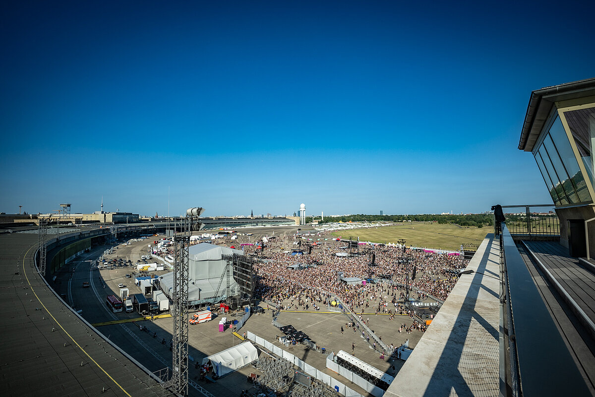 Ab dem 28. Juli 2025 bleibt der THF TOWER weitestgehend geschlossen. An ausgewählten Wochenenden ist der THF TOWER von 11:00 bis 18:00 Uhr für Besucher:innen kostenfrei zugänglich. Bitte informieren Sie sich in unserem Veranstaltungskalender.