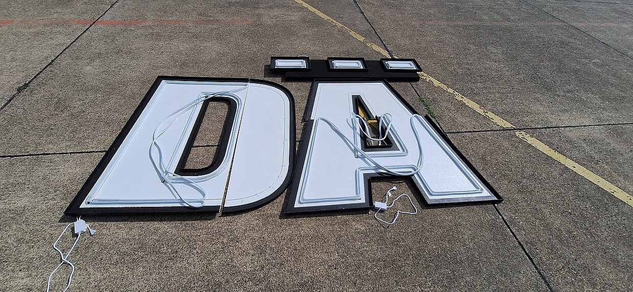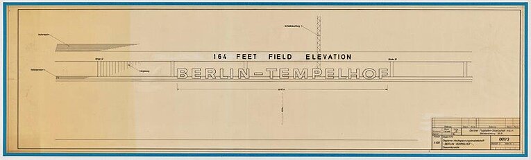 Der Schriftzug, der einst im Herbst 1972 von der Berliner Flughafengesellschaft als moderne Hochspannungsleuchtschrift installiert wurde, hat eine lange Geschichte. Er besteht aus 15 etwa 2 Meter großen Buchstaben und einem Bindestrich, gefertigt aus wetterbeständigem Stahlblech und mit 2 cm dicken Leuchtstoffröhren versehen. Mit einer Länge von 42 Metern strahlt der Schriftzug seit über 50 Jahren über das Tempelhofer Feld.